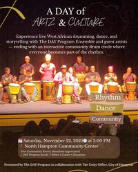Join us on Saturday, November 22, 2025, 2:00 p.m. at North Hampton Community Center for A Day of Artz & Culture — a vibrant daytime showcase of live West African drumming, dance, and community spirit